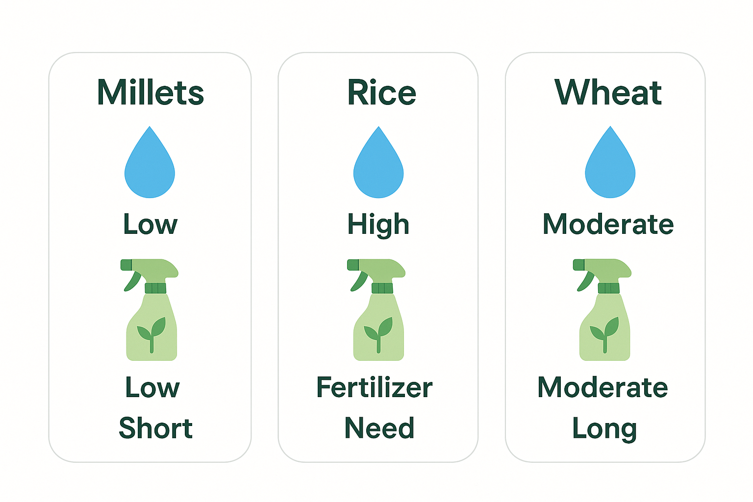 | Low Water Requirement | Uses 70–80% less water than rice |